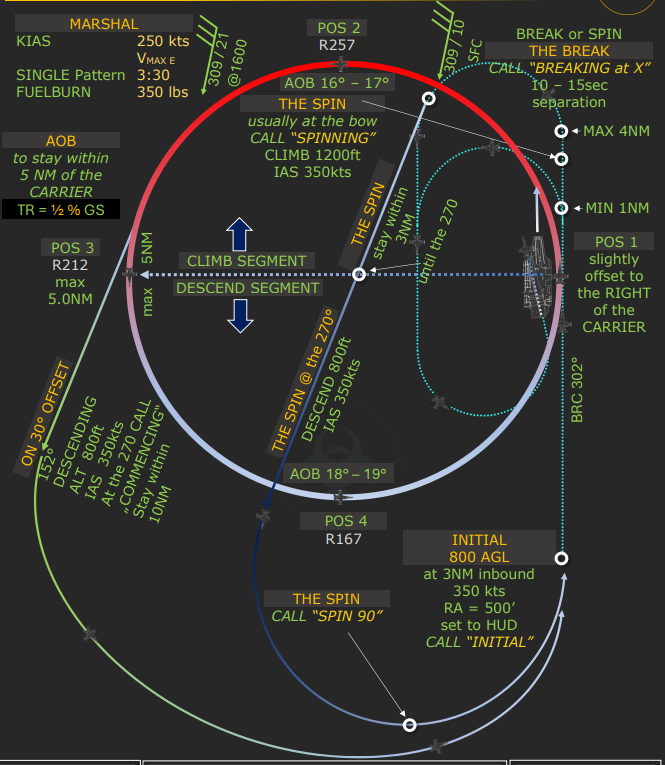 This picture shows how a complete case 1 approach should look like, and how a spin pattern is usually flown: